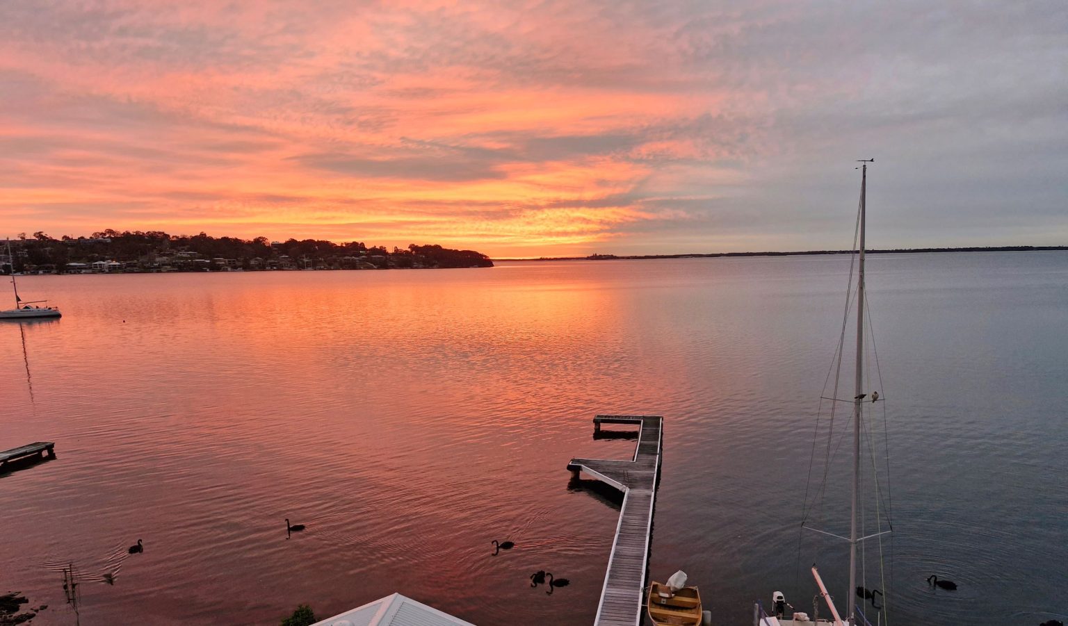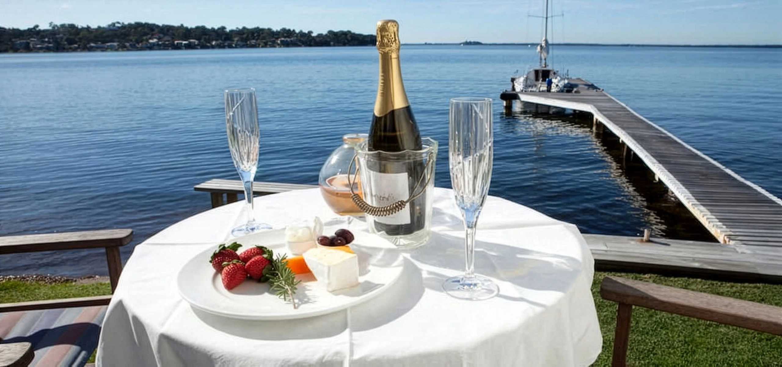 Enjoy a glass of wine on the deck within direct view of the start and finish line of the Wangi Wangi Sailing Club.